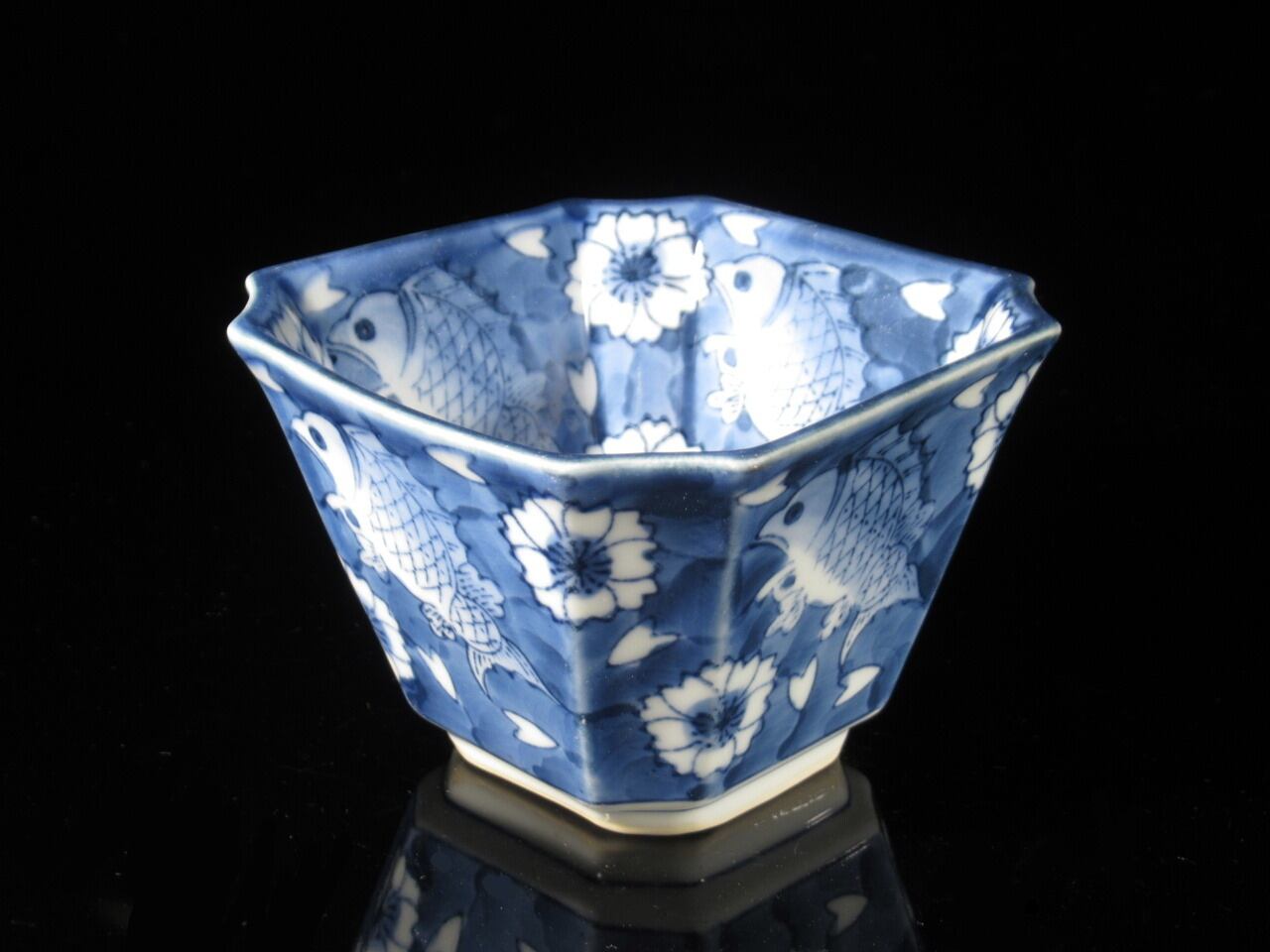 商品名:有田焼USED ゴス濃桜魚紋隅切角中付 ret2411