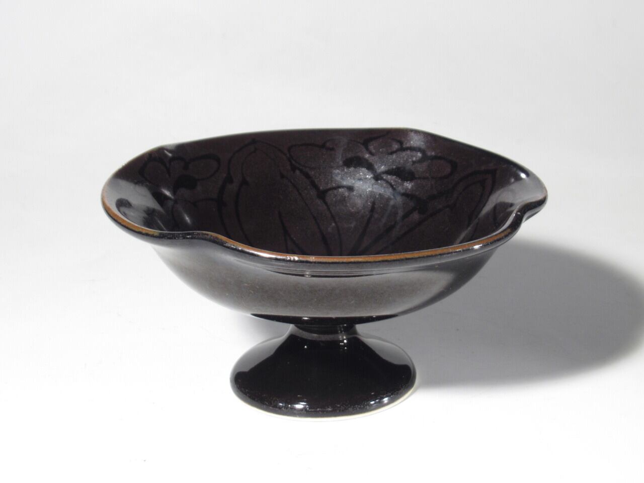 有田焼:深い茶色が魅力的な天目花絵ナブリ高台鉢は、優雅な花絵が施された美しい逸品です。高台鉢の形状が、テーブルを華やかにします。