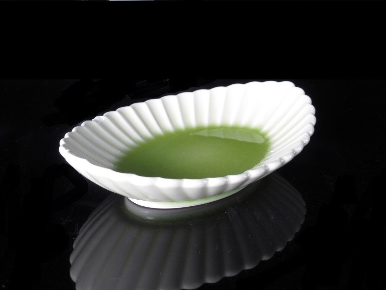 有田焼USED グリーン流し菊割楕円皿:美しいグリーン流しと、菊割の形状が上品さを際立たせる楕円皿です。使い勝手の良い形状は、日常の食卓から特別なシーンにまで幅広く活躍します。
