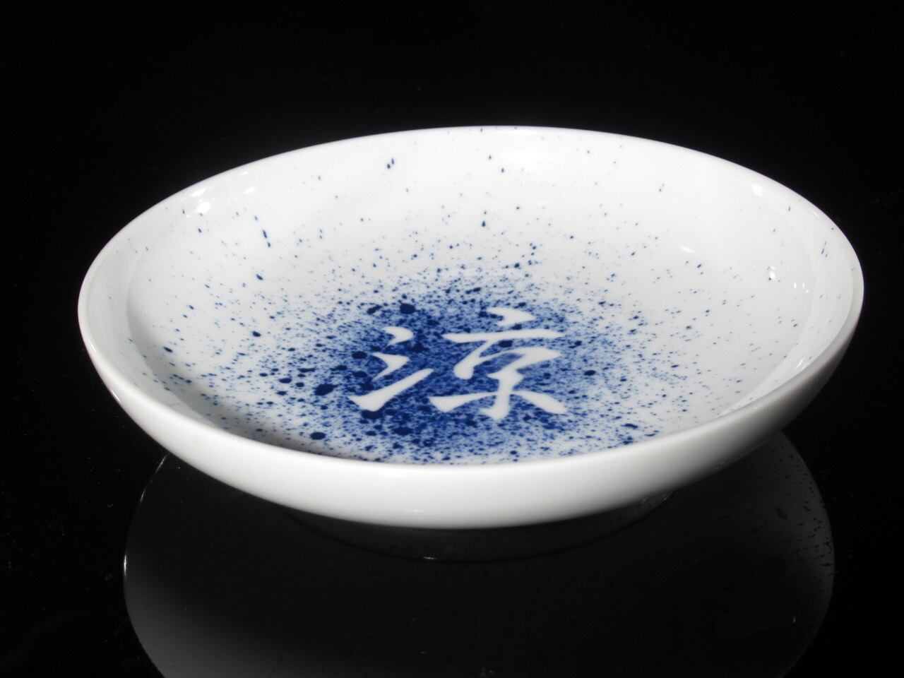 京都USED 吹墨文字16cm皿(たち吉):独特な吹墨の技法で描かれた文字のデザインが特長の美しい皿です。シンプルながらも存在感のあるこの皿は、和洋問わず様々なお料理にマッチし、食卓をより一層引き立てます。デザインの魅力を生かして、特別な日の演出にもお楽しみいただけます。